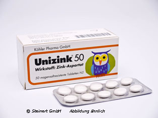 Die Unizink 50 Tabletten werden zur Behandlung einer Abwehrschwäche und zur Stärkung des Immunsystems angewendet. Die Tabletten enthalten 50 mg des Spurenelementes Zink. Zink unterstützt viele Stoffwechselvorgänge, fördert das Wachstum und die Zellerneuerung. Besonders Haut, Haare und Nägel, die inneren Organe und der hormonähnliche Stoff Insulin sind von einem Zinkmangel betroffen. Zinkmangel ist häufig auch eine Folge von Diabetes mellitus. Auch bei vielen Allergikern lässt sich ein Zinkmangel feststellen. In diesen Fällen können die Unizink  50 Tabletten den Körper vor Überreaktionen schützen.